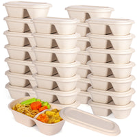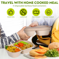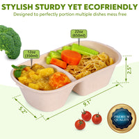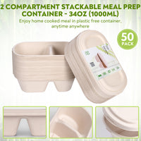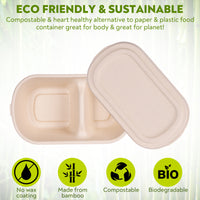 Biodegradable & Disposable Bamboo Bento Box - 2 Compartment 34oz, 50 Pack